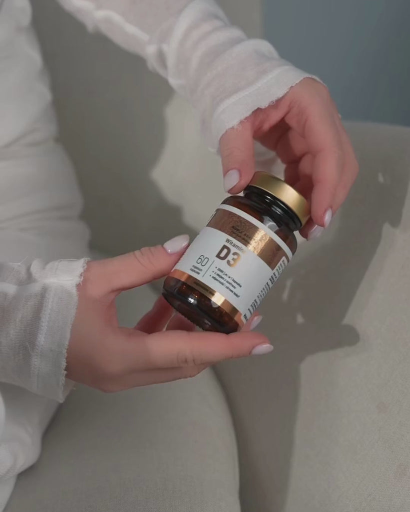 Vitamin D ist besonders in Zeiten von Sonnenmangel, von dem die meisten Polen betroffen sind, essenziell. Unser Nahrungsergänzungsmittel liefert 1000 % des Tagesbedarfs an diesem Vitamin in einer einzigen Kapsel. Die Zugabe von Distelöl verbessert die Aufnahme. Die weiche, leicht zu schluckende Kapsel befindet sich in einem dunklen Glasbehälter, der vor äußeren Einflüssen schützt. Vitamin D unterstützt das Immunsystem, gesunde Knochen und Zähne, eine normale Muskelfunktion und einen ausgeglichenen Kalziumspiegel im Blut. Außerdem ist es an der Zellteilung beteiligt.